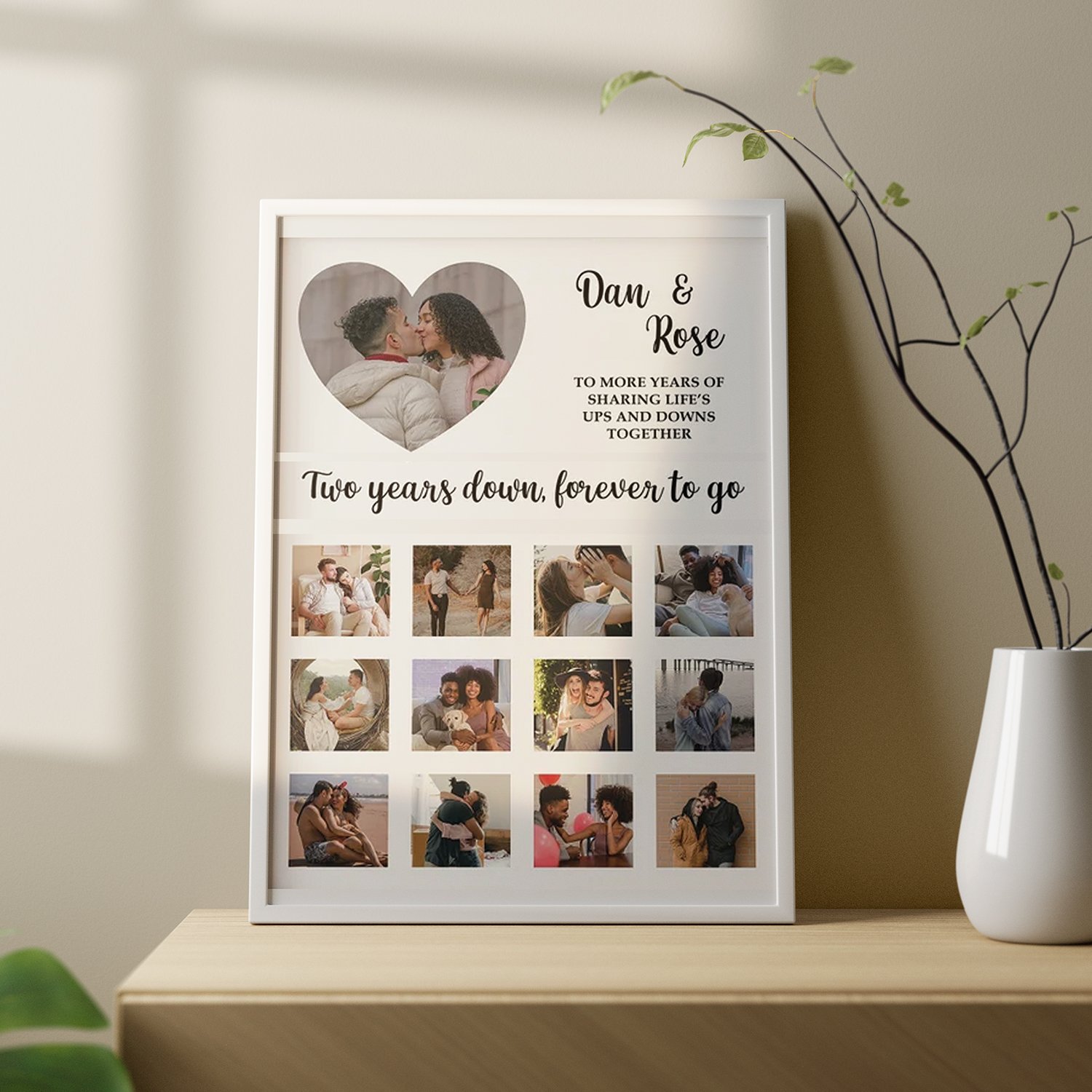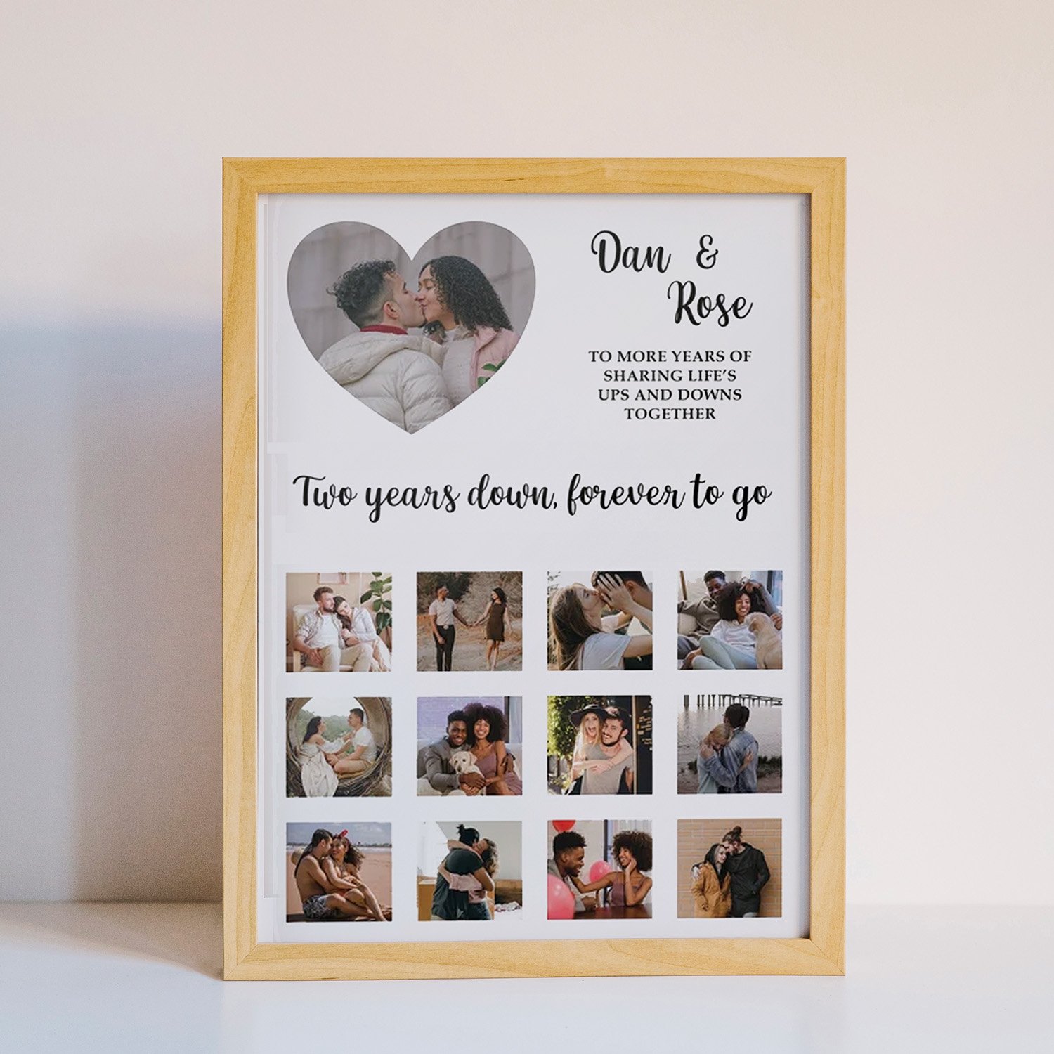 A personalized 1st anniversary gift for your boyfriend or husband, this unique collage beautifully showcases your favorite moments together. Ideal for marking your 1 year anniversary, it combines heartfelt memories into a stunning piece of art.