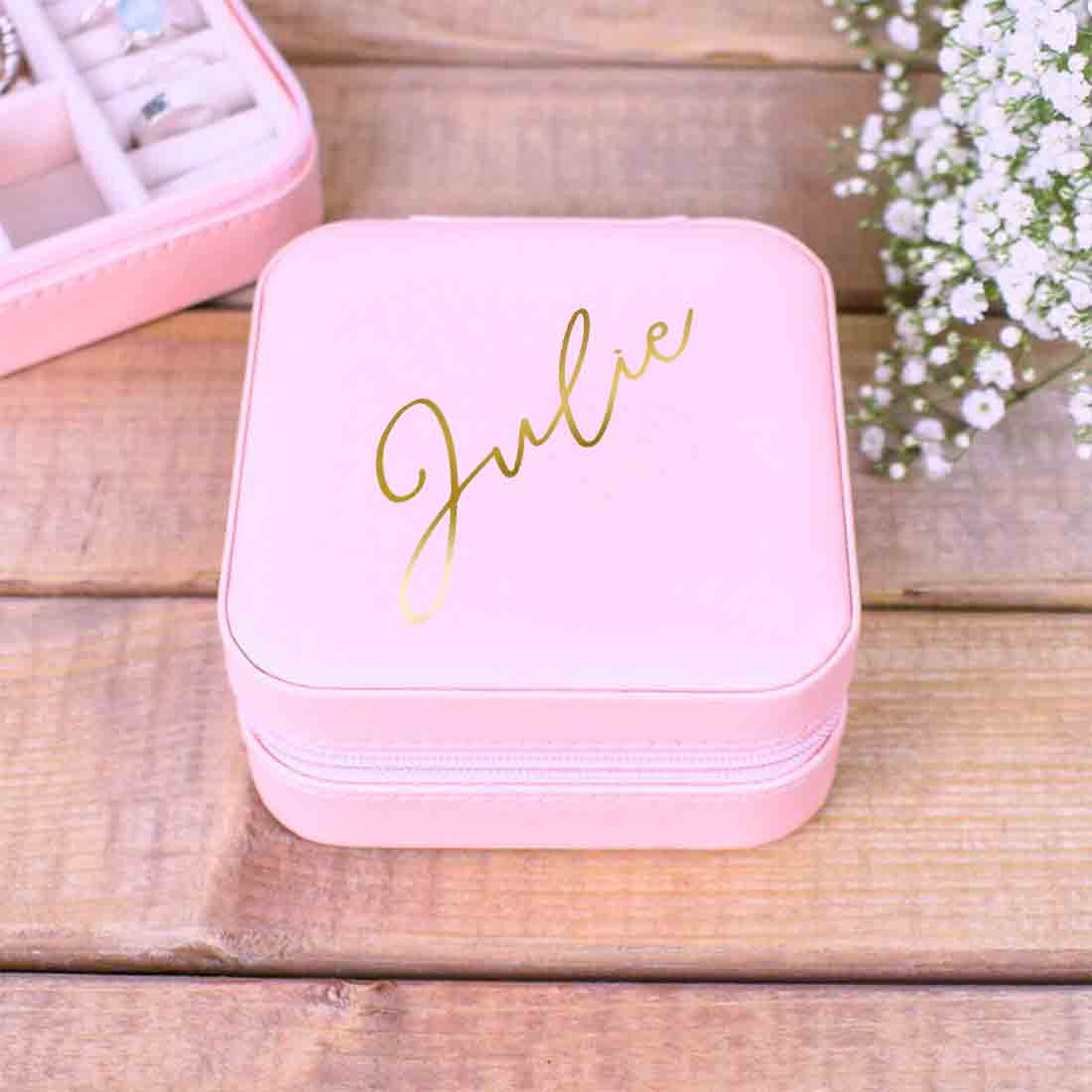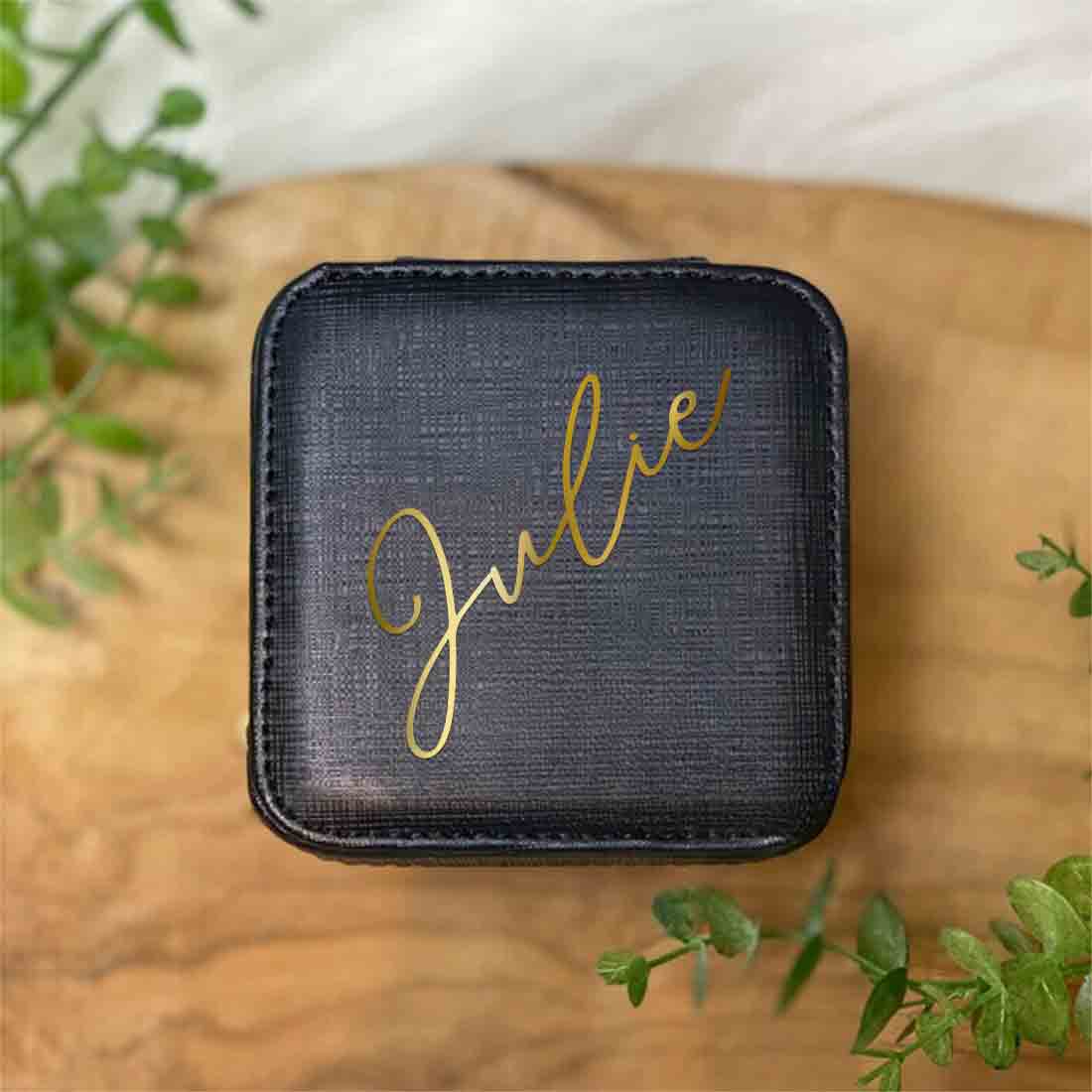 Introducing the Small Jewellery Box organizer made with luxurious PU canvas leather. Available in both pink and black, this stylish box is perfect for storing your precious accessories. Personalize it with golden fonts to add a touch of elegance.