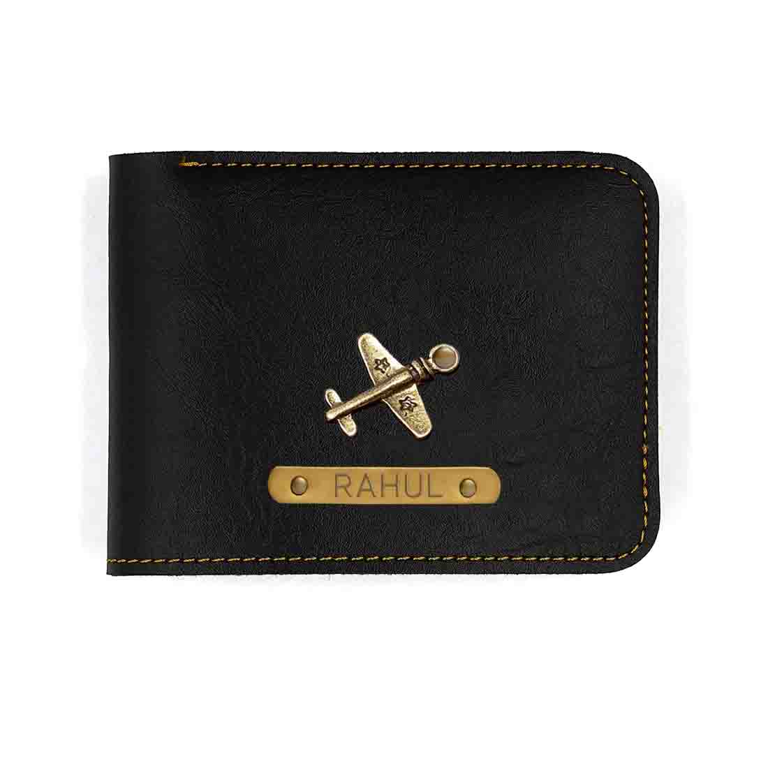 A personalized men’s wallet with a charm, made of high-quality faux leather and featuring 6 card slots and 2 currency note compartments. Can be customized with your name or initials.