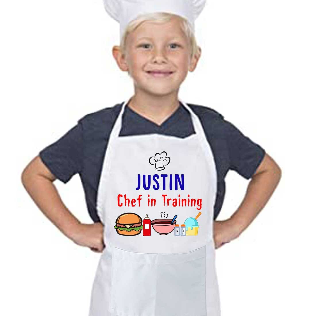 Customized children chef aprons perfect for gifting to encourage little chefs. Adjustable and comes with a smartly designed slot/pocket.