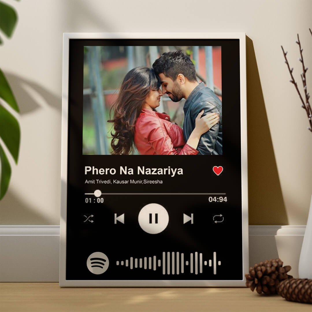 A personalized plaque that allows you to add a song and text to create a unique gift for loved ones. Available in different frame sizes and colors.